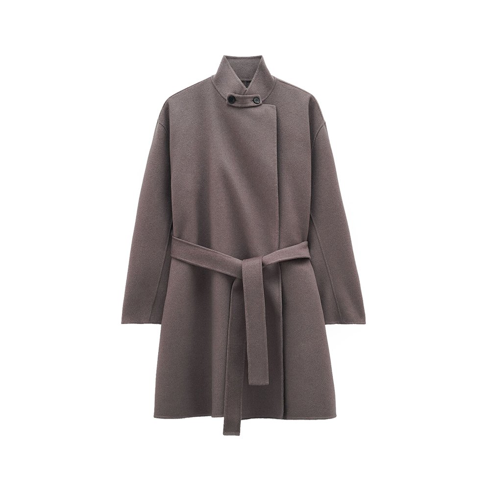 Oversized wrap jacket in double-faced brushed wool and cashmere, with hand-stitched edges. Designed with an oversized fit.