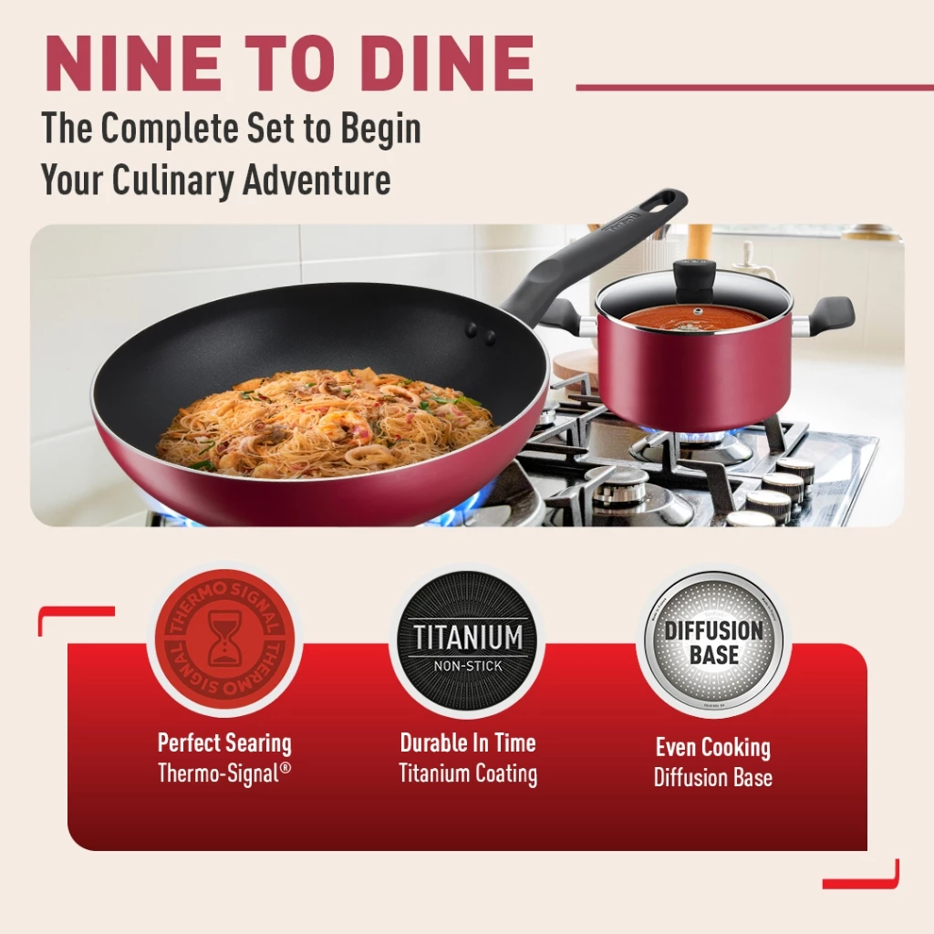 Tefal Supercook 9pcs set (Frypan 24cm, Wokpan 28cm, Stewpot 22cm & 24cm, 3 Spatulas)