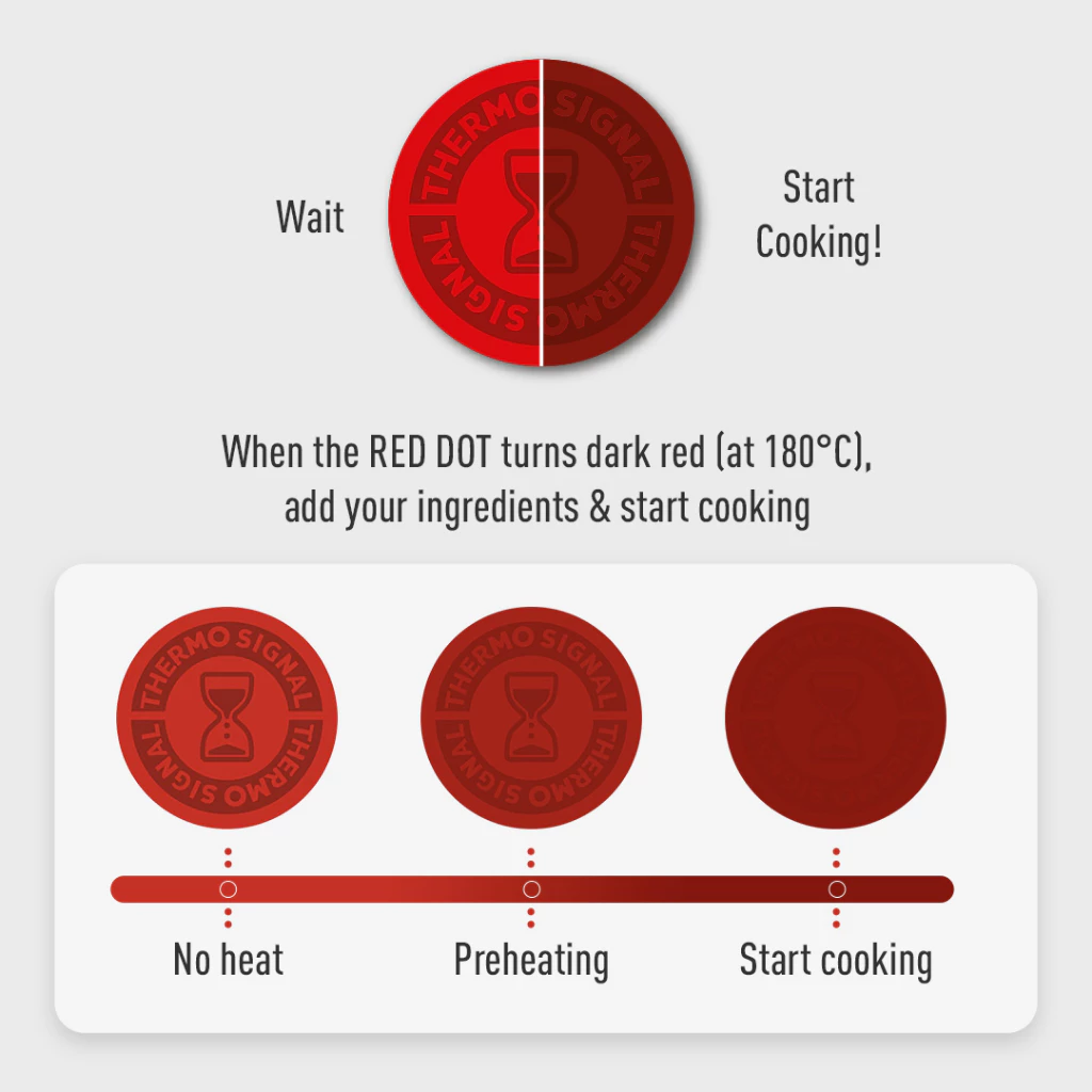 Non-Stick coating powerglide coating enables effortless cleaning and easy cooking performance and eco-Friendly, Safe non-Stick coating no PFOA, no Lead, no Cadmium). Easy to use ideal features and design, Thermo-Spot marking turns full red when the pan reaches the ideal temperature, for perfect searing performance made easy, Glass lid: for easy monitoring, Dishwasher Safe